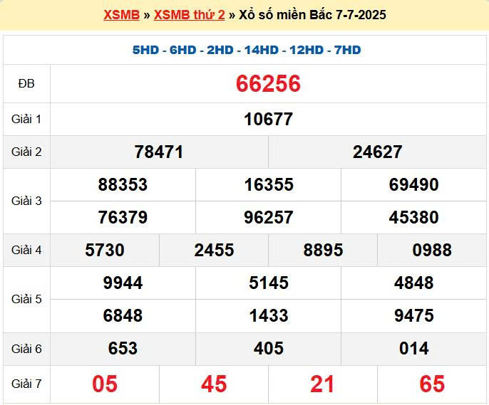 Kết quả ngày 07/07/2025 chúng ta nên xem lại