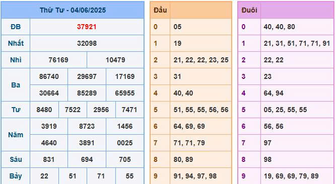 Xem lại kết quả hôm trước ngày 04/06/2025
