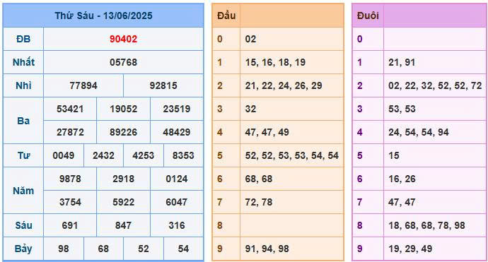 Xem lại kết quả hôm trước ngày 13/06/2025